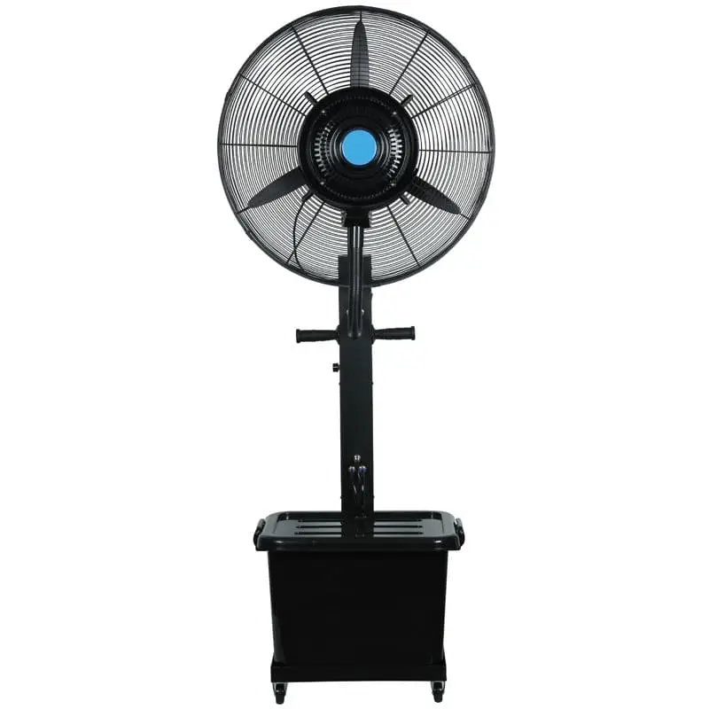 Ventilador evaporativo diseñado para refrescar el ambiente en terrazas, naves, restaurantes y espacios amplios. Su sistema de ventilación combinado con la pulverización de agua ayuda a reducir la sensación térmica y crear un ambiente más agradable durante los días de calor. Es una solución práctica y eficiente para climatizar zonas abiertas o con gran afluencia de personas.